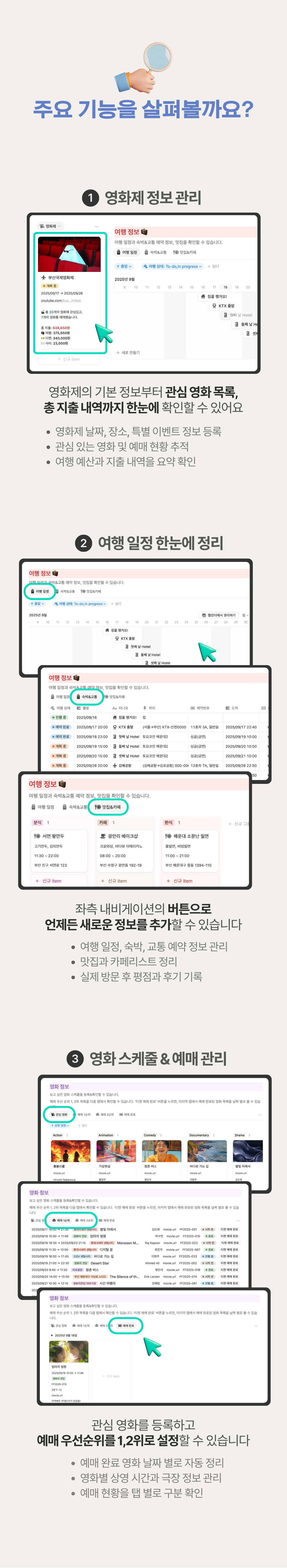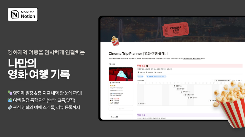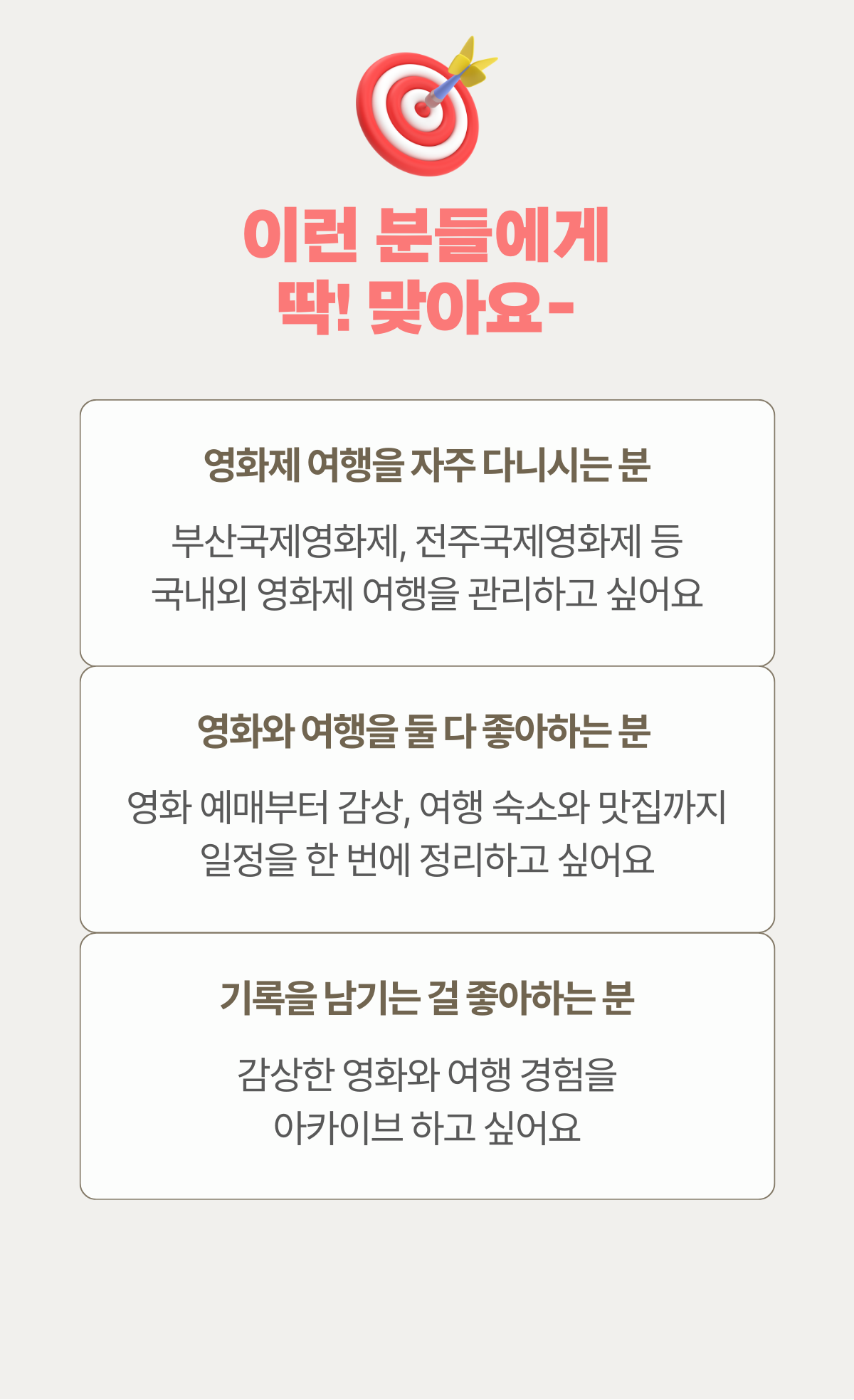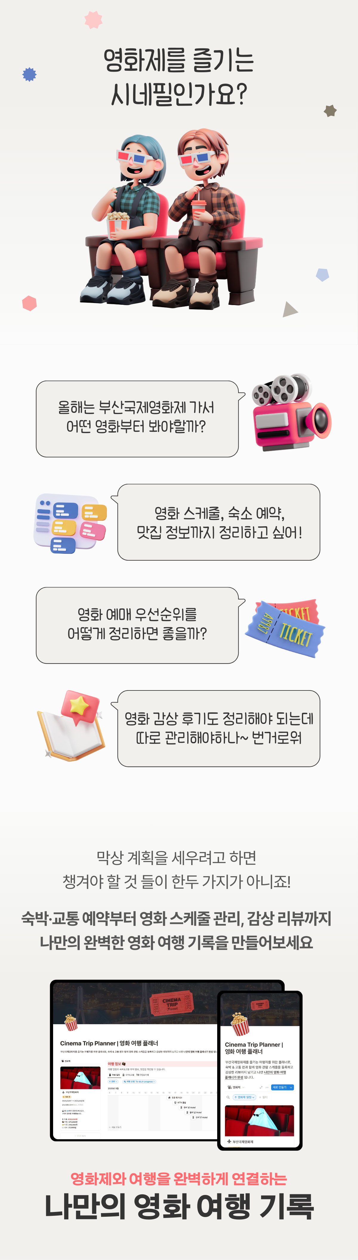 Cinema Trip Planner로 영화제 여행의 모든 순간을 완벽하게 기록해보세요! 🎬