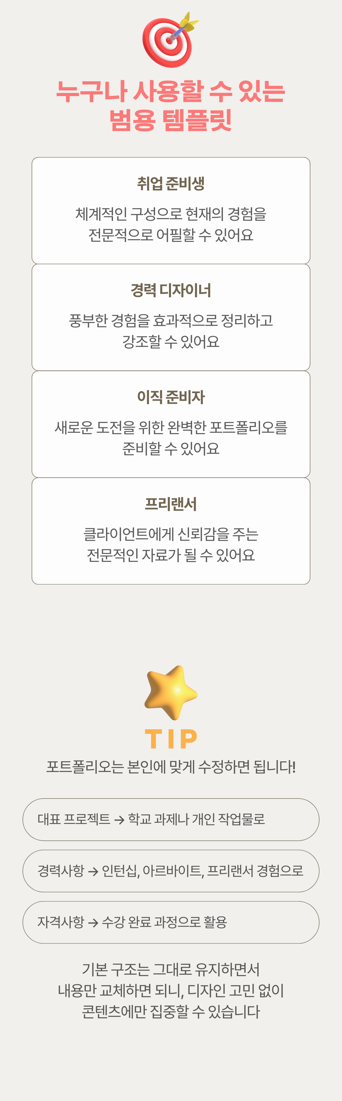 취업 준비생, 이직을 준비하는 분, 프리랜서까지 활용하기 좋은 템플릿입니다!